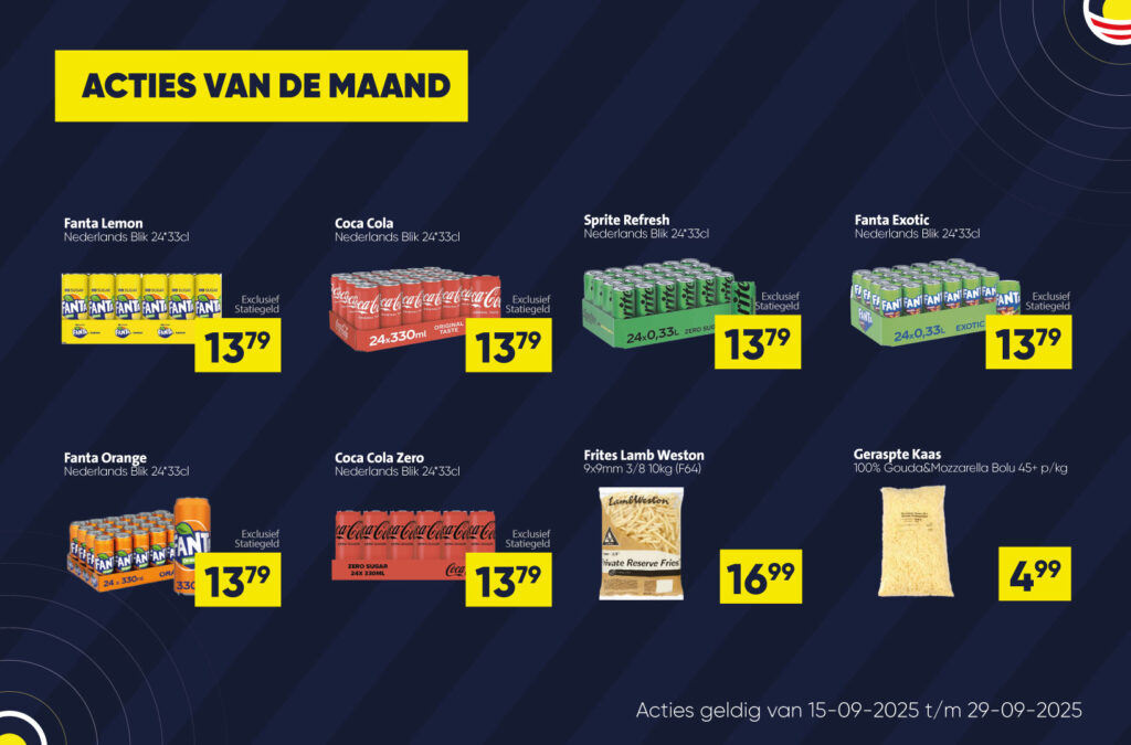 Ons assortiment is breed én doordacht. A-merken waar het moet, slimme alternatieven waar het kan. Altijd met oog voor kwaliteit, beschikbaarheid en marges. Heeft u een lijstje, een seizoenspiek of een vervangend artikel nodig? We denken mee, boeken snel en zorgen dat u verder kunt.